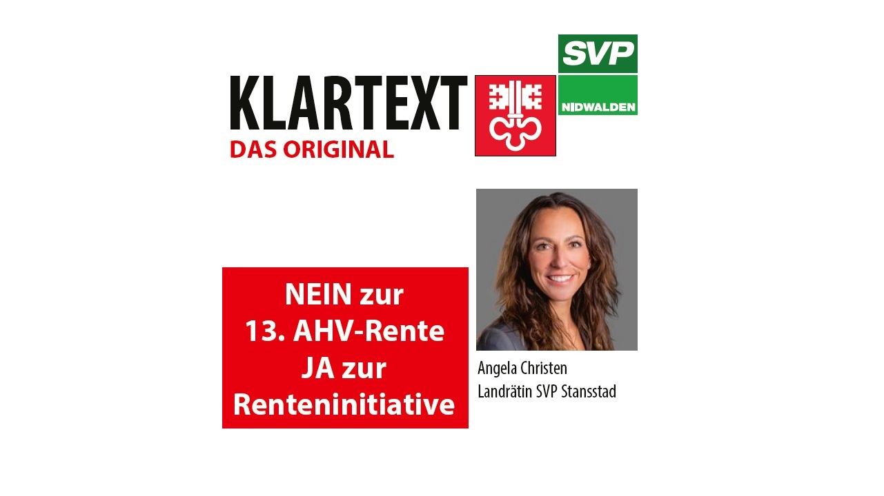 Klartext: Nein zur 13. AHV Rente, Ja zur Renten-Initiative